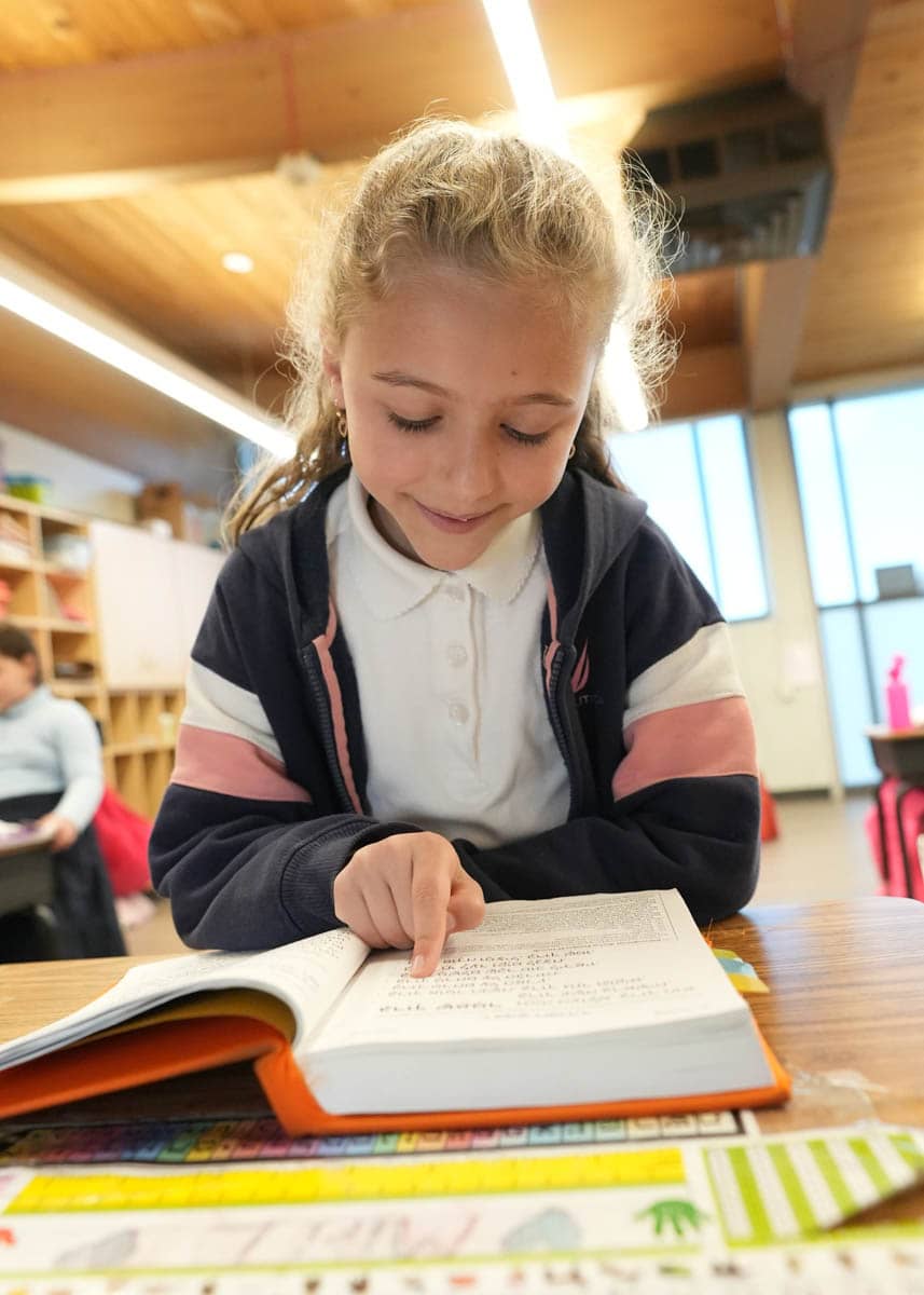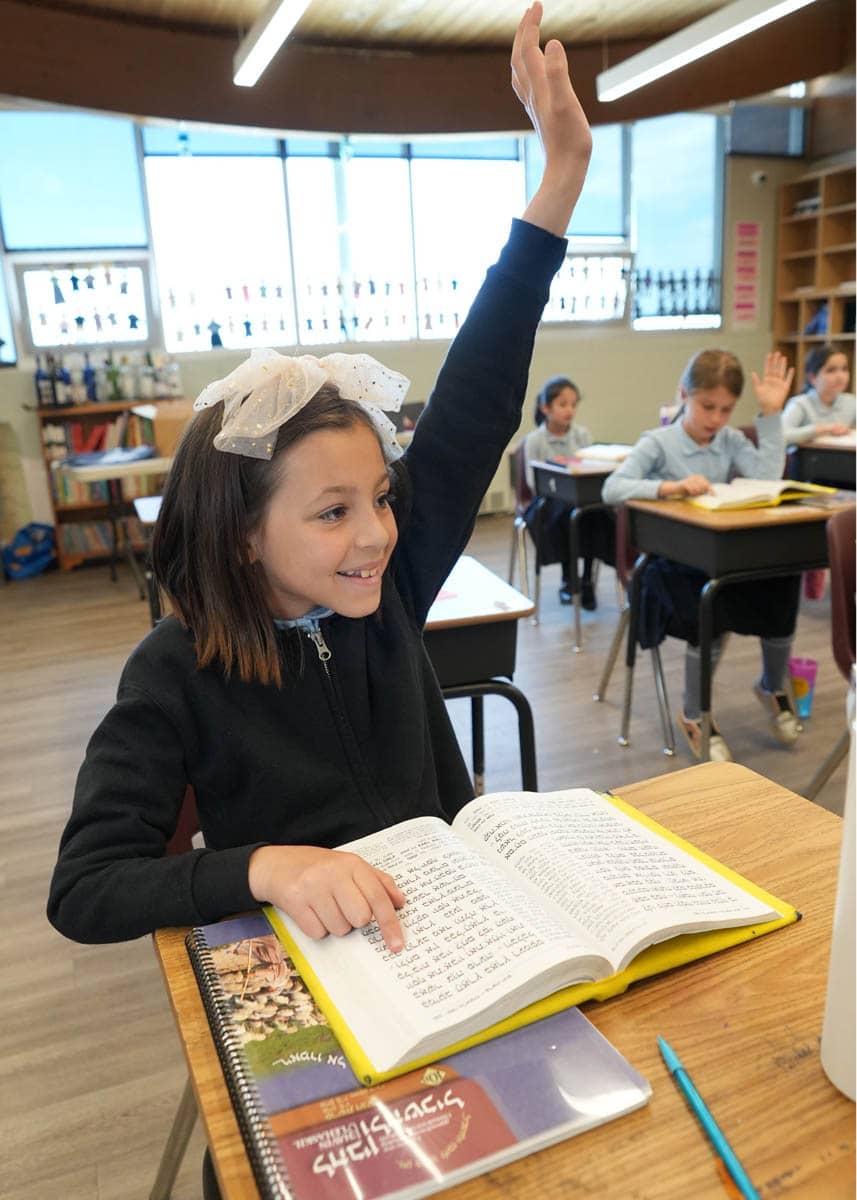 Our Judaic studies program is skills-based, providing students with the tools to become independent learners. This begins with a strong foundation in Kriah (Hebrew reading) using the successful Kriability program. Students eventually develop an extensive Hebrew vocabulary, focusing on common nouns and shorashim (root words), to learn how to read and translate Chumash. They then progress to incorporating prefixes and suffixes, followed by mastering Rashi script and comprehension. This process empowers students to become independent learners.